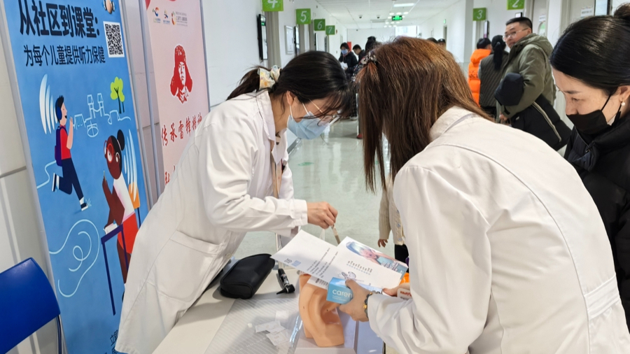今天是世界爱耳日,上海市儿童医院耳鼻咽喉头颈外科在泸定路院区开展义诊,提供免费耳镜检查,针对听力下降、耳鸣、耳闷、眩晕等各类耳科疑难问题提供一对一咨询,现场讲解科学用耳知识,助听器的验配与使用等。