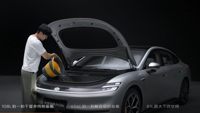 轿车与SUV在空间上还是有所差距的,即使是中大型轿车,也因为挑高有限而仅是小五座而已,而长安启源A06的长宽高做到了4885x1916x1496mm、轴距2922mm,较之同级的汉DM(轴距2920mm)、日产N7(轴距2915mm)甚至还要大一点,其后排头部空间有975mm,高一米八男性乘坐时头部仍有3指空间;走廊宽度约有500mm,一个5岁的小孩基本可以轻松穿越。除了足够坐着舒适,启源A06还能满足用着大的需求,该车提供656L后备箱+108L干湿多用前备箱,后者比Model 3还要多19L。另外若是将后排座椅电动一键放倒,还能与后备箱形成2m星空大床,头枕反插当枕头,即可满足两个1米8的成年人平躺休息。