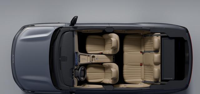 这车看着挺大,但定位家用,轴距2米7多,后排能舒舒服服坐下三个人。后备箱平常能放四个行李箱,后排座椅放倒后能塞进八个20寸的。内饰颜色有好几种可选,里面还有带32种颜色的氛围灯,晚上看着挺热闹。
